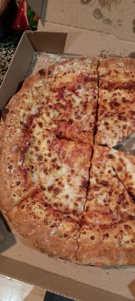 cheeses made with 100% real mozzarella, feta, provolone, cheddar, parmesan and asiago cheeses, sprinkled with oregano on a cheesy parmesan asiago crust.